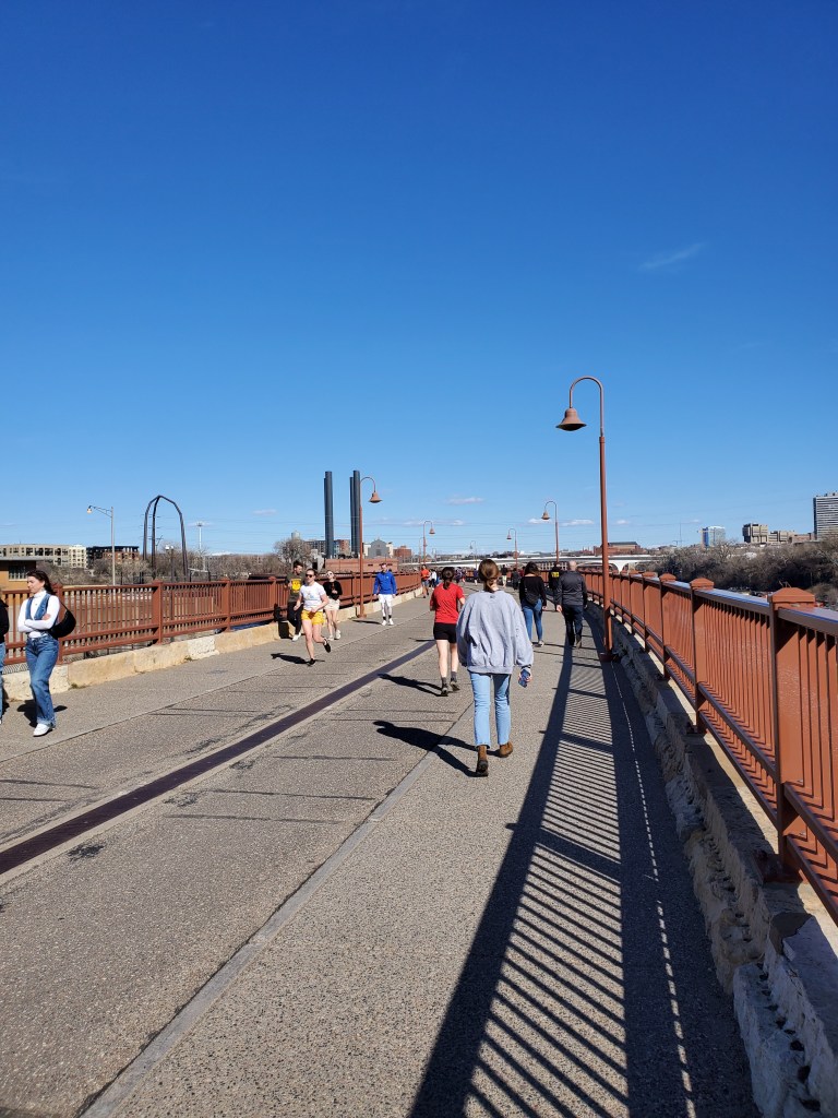 My first day in the city was warm and sunny – fairly unusual for Minnesota in mid-April. To take advantage of the weather, I strolled across the historic Stone Arch Bridge which overlooks the Mississippi River and St. Anthony Falls. Originally built in the early 1880s for the railroad, it was later converted into a pedestrian bridge in the mid-1980s. Today, the bridge is full of life; people of all ages enjoying the outdoors.