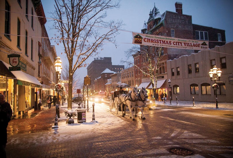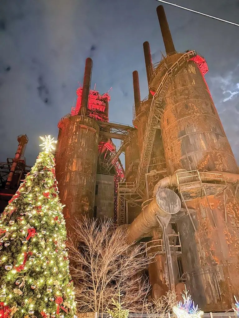 Bethlehem benefits from a smaller, more pedestrian-scaled Main Street layout and historic architecture. These existing building blocks establish a strong sense of place and local identity. The city’s decorations and lighting amplify those design strengths, proving that powerful holiday placemaking is less about sheer spectacle and more about, in the case of the decorations around Bethlehem Steel Works, authenticity and consistency in reinforcing a sense of place.