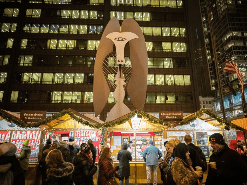 Like Bryant Park, Chicago elevates an existing public plaza by transforming Daley Plaza into a German Christkindlmarket. This intervention highlights the importance of cultural authenticity and theme in placemaking, building upon the city’s significant German and Polish ancestry. The market’s dense, human-scaled activity (the smells of mulled wine and the glow of temporary stalls) takes an otherwise sterile civic plaza surrounded by skyscrapers and fosters meaningful social interaction that only thoughtful programmatic design can achieve.