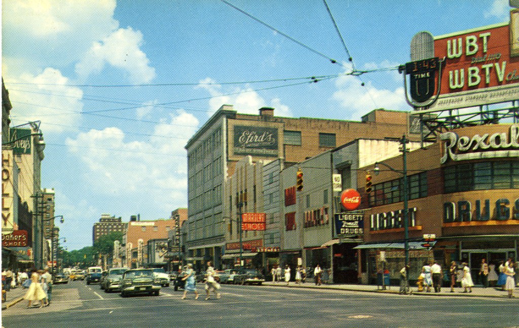 Through the 19th and early 20th centuries, Tryon Street thrived as a commercial corridor. Streetcars moved people up and down its length. Department stores and banks rose in brick and terracotta. The street hummed with the noise of people doing business, running errands, running into each other. It was, in the fullest sense, a place.