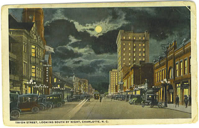 When Charlotte was formally established in 1768, Tryon Street became the organizing axis of its grid. Where Tryon crossed Trade Street, the two named after the governor and the activity that defined early settlement, became the literal center of the city. The courthouse sat at that intersection. So did the taverns, the dry goods merchants, the lawyers’ offices. The corner of Tryon and Trade was where you went when something mattered.